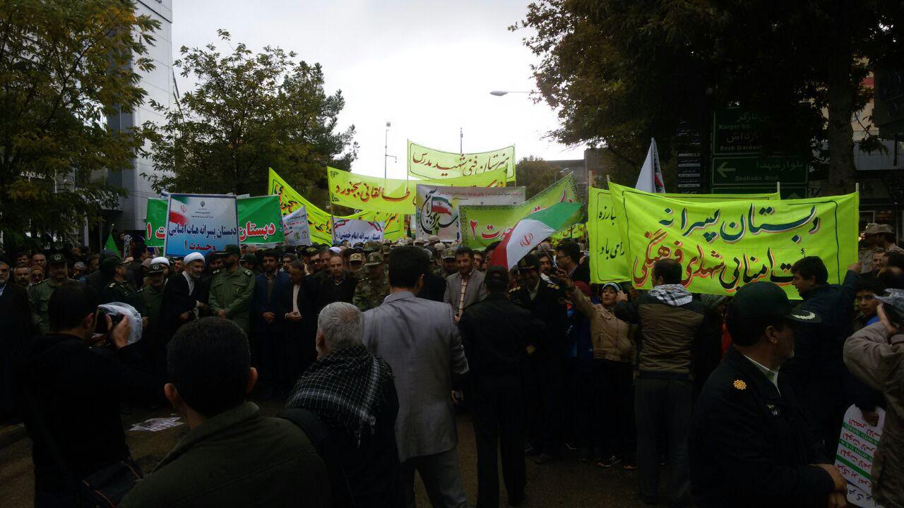 هوای سرد پاییزی با شعار های ضد استکباری ، مرگ بر آمریکا و مرگ بر اسراییل بر