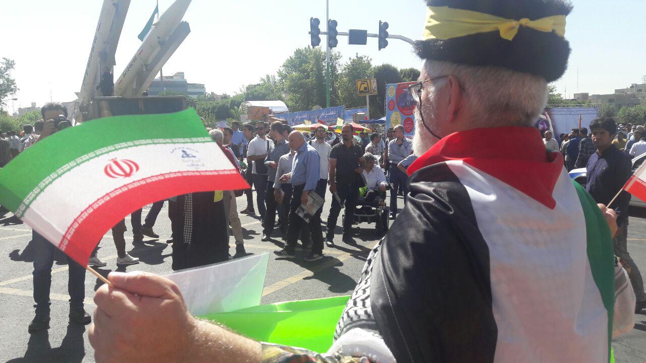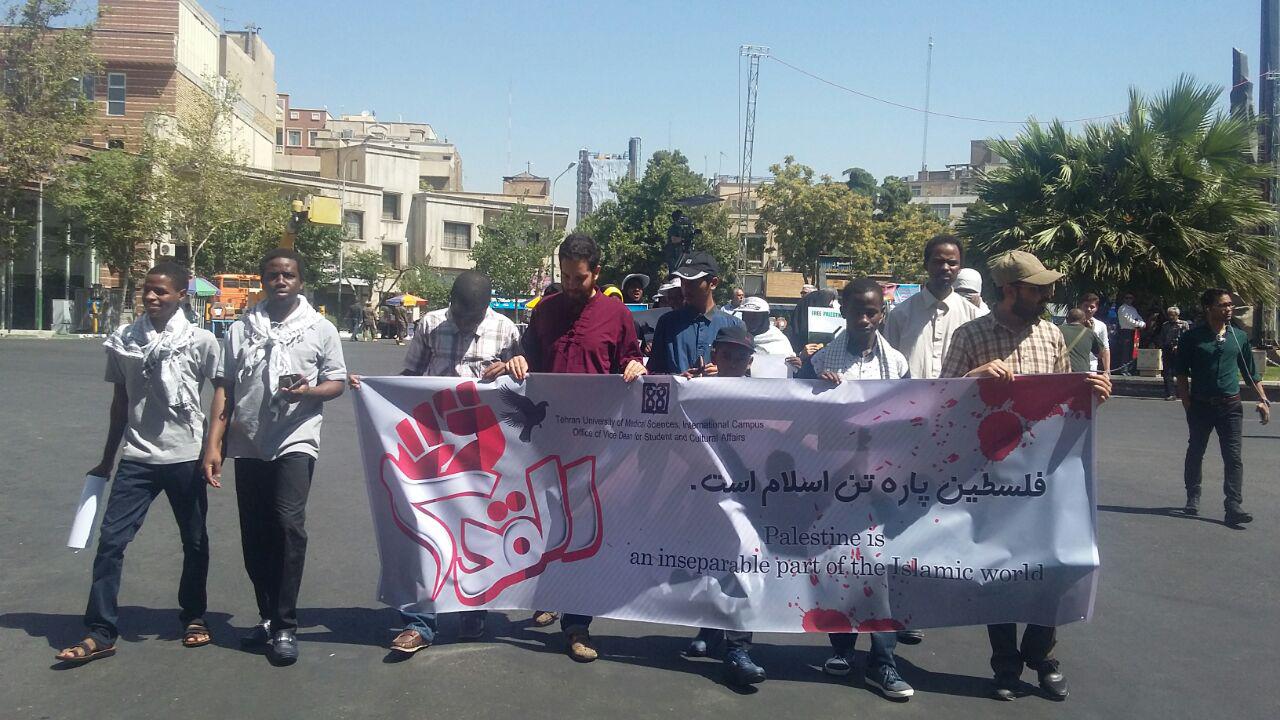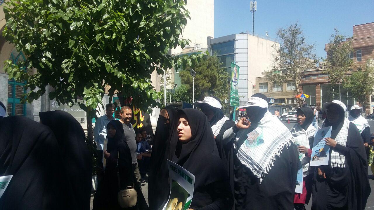گزارش‌های میدانی خبرنگاران خبرگزاری صدا و سیما، از مسیرهای ده گانه راهپیمایی روز جهانی قدس در تهران حاکی است که برغم گرمای هوا، مردم روزه دار از لحظات نخست با حضور در مسیرهای مختلف به صورت انفرادی، خانوادگی و دسته جمعی با در دست داشتن پلاکارد و کاغذ نوشته با مضامین ضد صهیونسیتی و سر دادن شعارهای مرگ بر اسرائیل، مرگ بر آمریکا، مرگ بر آل سعود و مرگ بر داعش در حال حرکت به سمت دانشگاه تهران هستند.
