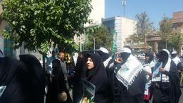 این راه پیمایان با در دست داشتن پلاکاردها و دست نوشته‌هایی در محکومیت اشغالگری‌های رژیم صهیونیستی شعار مرگ بر آمریکل، مرگ بر اسراییل و مرگ بر آل سعود خائن سر می‌دادند.