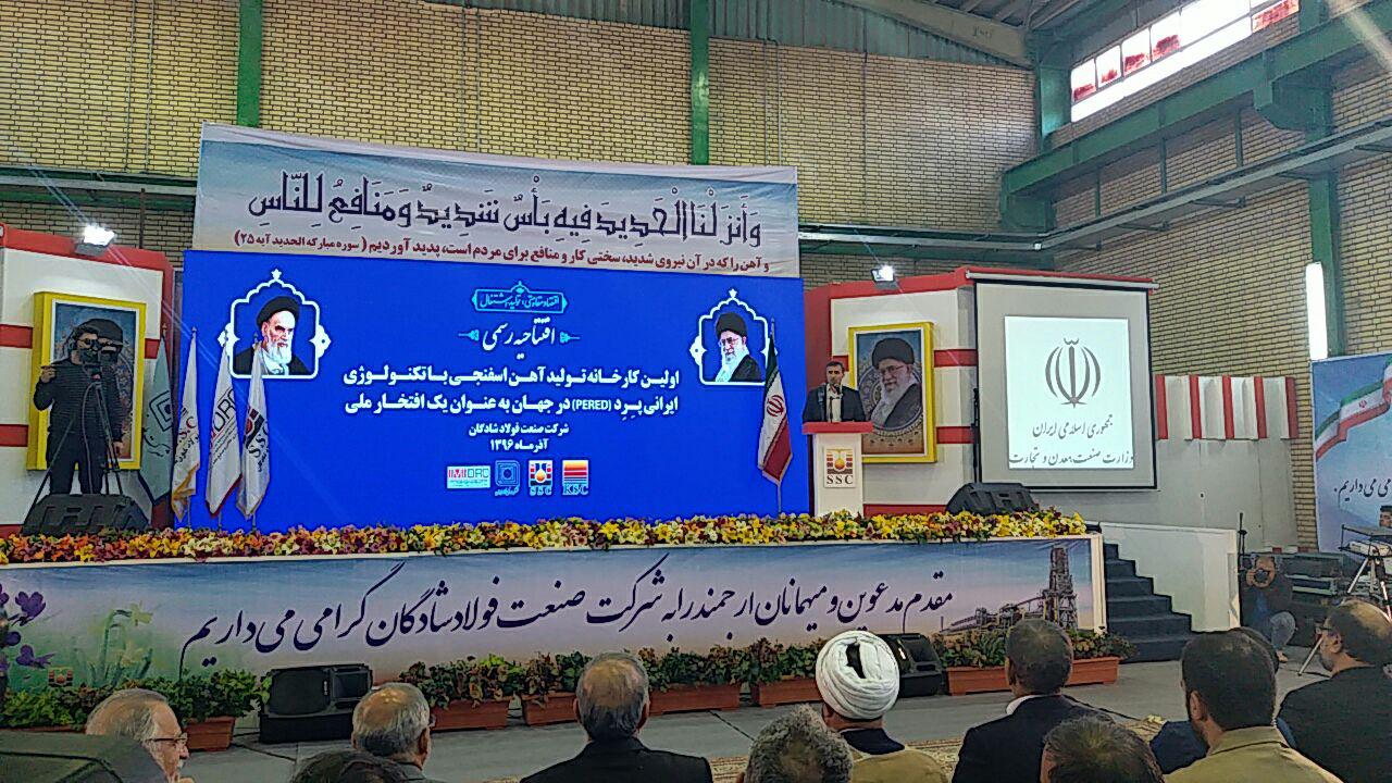 نخستین کارخانه تولید آهن اسفنجی به روش ایرانی پرد(PERED) در جهان ، امروز با حضور اسحاق جهانگیری معاون اول رئیس جمهور در شادگان به بهره برداری رسید.