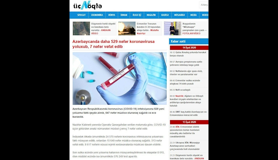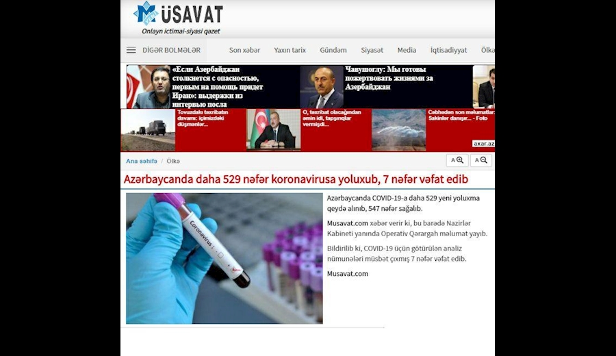 - تعداد بهبود یافتگان از تعداد مبتلایان به کرونا پس از مدتها در جمهوری آذربایجان پیشی گرفت. ۵۲۹ نفر در ۲۴ ساعت گذشته مبتلا و ۵۴۷ نفر بهبود یافته اند. مجموع مبتلایان به ۲۴۵۷۰ نفر و فوتیها به ۳۱۳ نفر رسید.