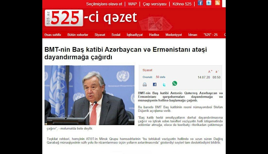 - دبیرکل سازمان ملل، جمهوری آذربایجان و ارمنستان را به رعایت آتش بس دعوت کرد.