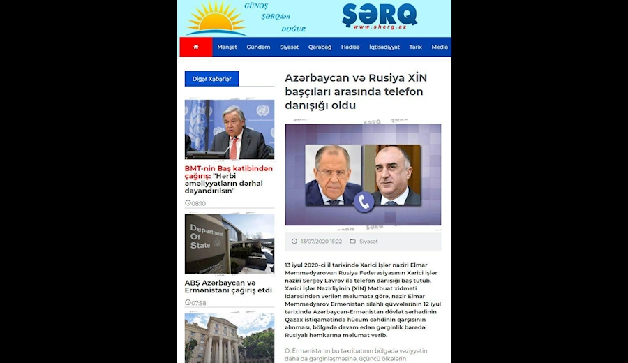 - وزرای امور خارجه جمهوری آذربایجان و ترکیه در خصوص درگیریها در مرز جمهوری آذربایجان و ارمنستان گفتگو کردند.