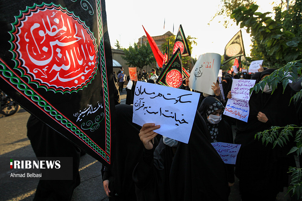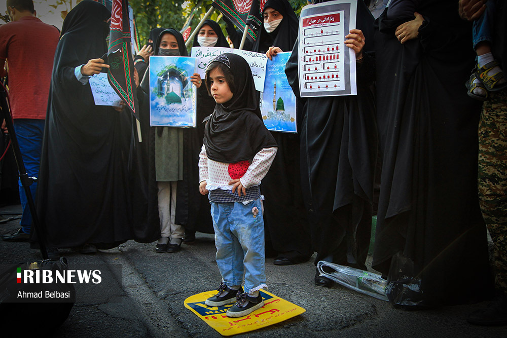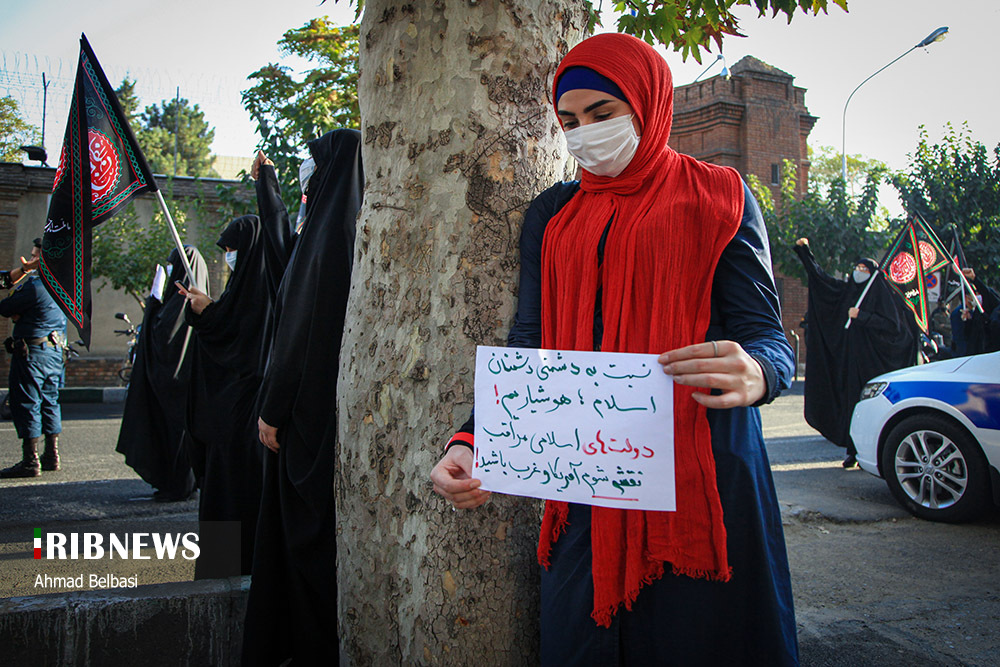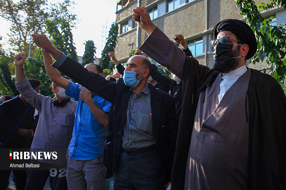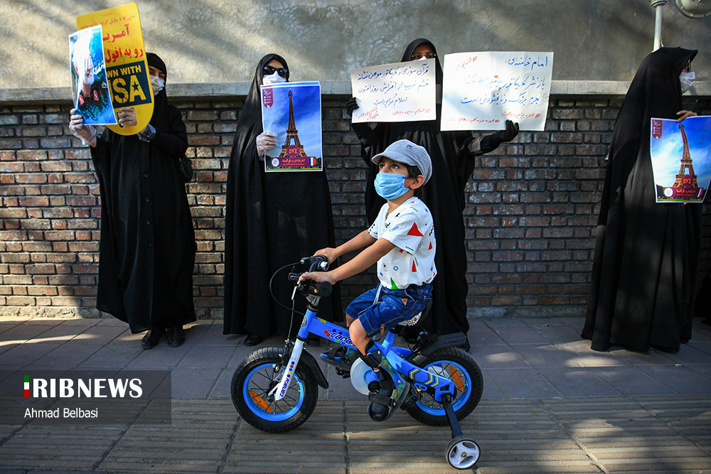 گروه عکس خبرگزاری صدا و سیما؛ در پی اهانت نشریه فرانسوی به پیامبر اسلام (ص) جمعی از دانشجویان و مردم انقلابی تهران دست به تجمع زدند. تجمع کنندگان که از دستنوشتههایشان مشخص بود، آمریکا و رژیم صهیونیستی را باعث و بانی این دست اقدامات توهین آمیز میدانستند، با در دست داشتن پرچمهای منقش به شعار مرگ بر آمریکا و با سردادن شعارهایی مانند «مرگ بر آمریکا» و «مرگ بر اسراییل» انزجار خود را از شیطان بزرگ و ایادی خارجی و داخلیاش نشان دادند.
