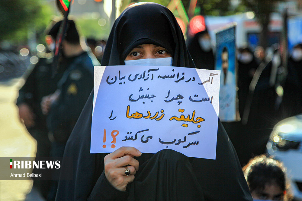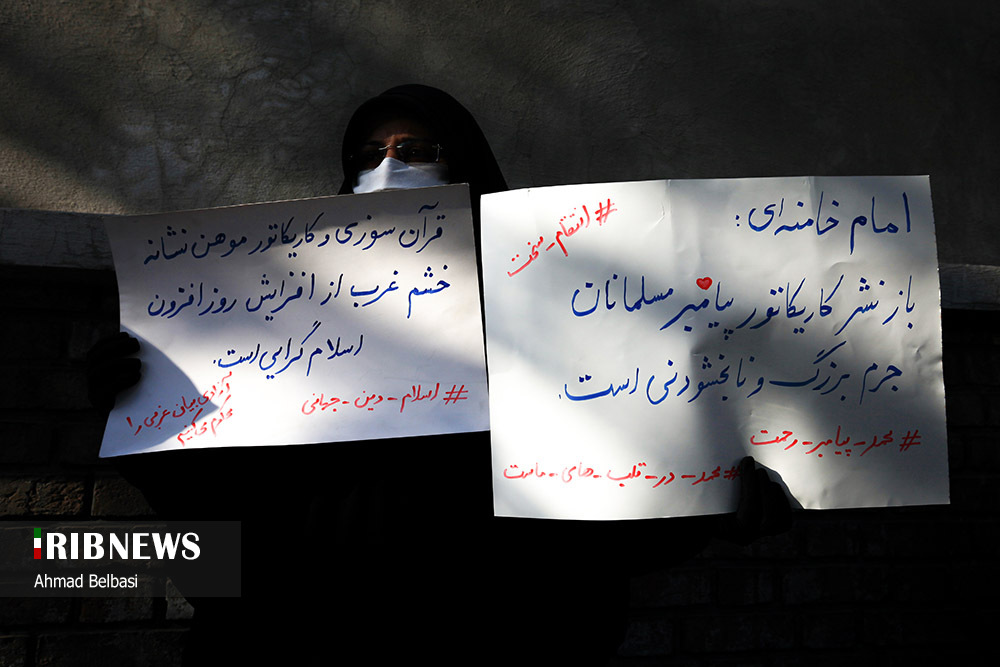 گروههای دانشجویی تجمع کننده در مقابل سفارت فرانسه در تهران با انتشار بیانیه ای، اقدام نشریه فرانسوی در اهانت به ساحت مقدس پیامبر اعظم (ص) و خودداری رئیس جمهور این کشور از محکوم کردن این اقدام موهن را محکوم کردند.