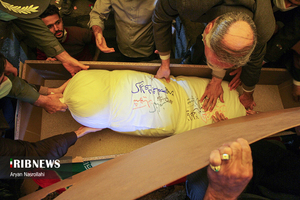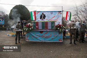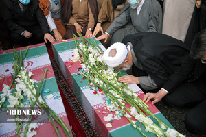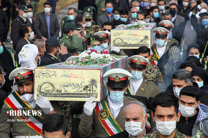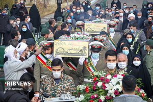 گروه عکس خبرگزاری صدا و سیما: پیکر مطهر ۲ شهید گمنام دوران دفاع مقدس که در عملیات کربلای ۵ به درجه رفیع شهادت نایل شده و در تفحصهای اخیر پیکر پاک آنها بعد از سالها پیدا شد، در محوطه دانشگاه فرهنگیان پس از تشییع به خاک سپرده شد.