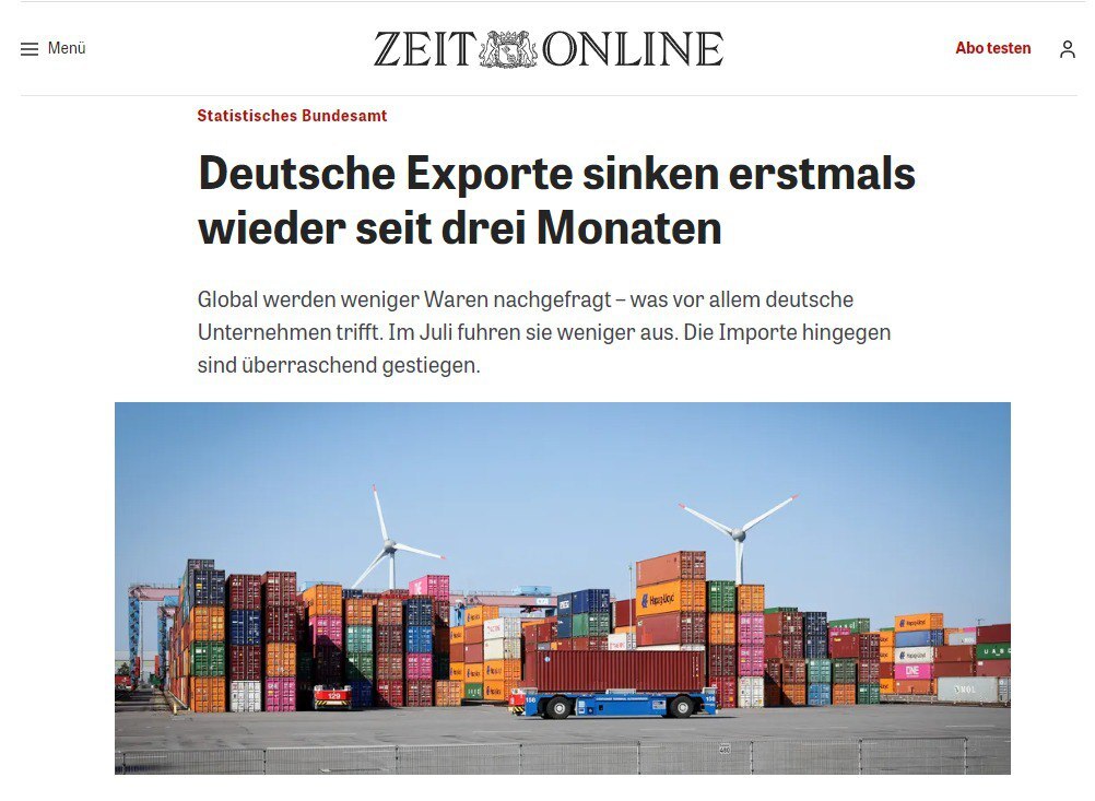 در مرداد ماه صادرات آلمان به کشورهای خارج از اتحادیه اروپا ۲.۵ درصد معادل ۵۸.۵ میلیارد یورو نسبت به قبل کاهش داشت.
