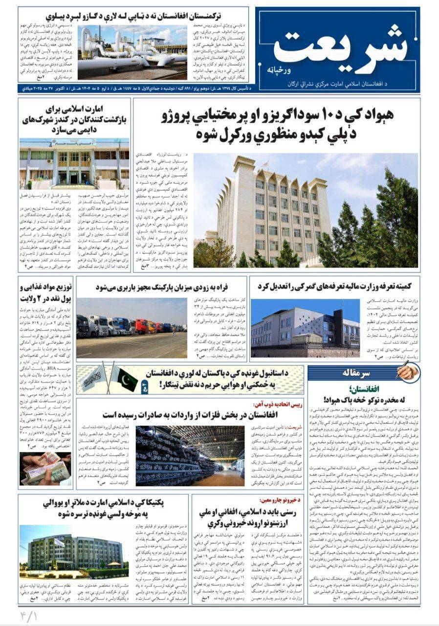 - طالبان پس از حدود ده روز، برق وارداتی ازبکستان را وصل کردند.
