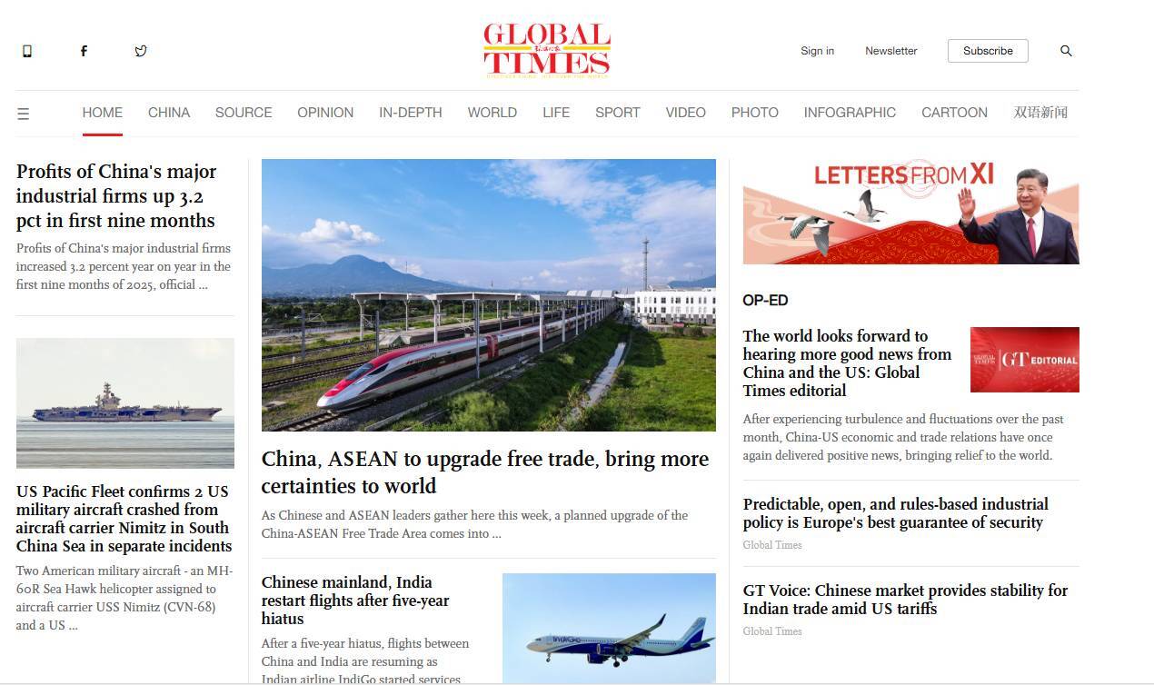 عناوین روزنامه‌ها و خبرگزاری‌های چین در روز دوشنبه ۵ آبان ماه ۱۴۰۴ و ۲۷ اکتبر ۲۰۲۵