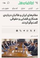 - مقامات ایران و طالبان درباره همکاری‌های قضایی و حقوقی گفت‌و‌گو کردند.