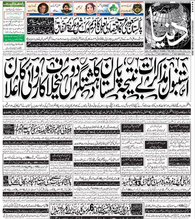 - رسانه پاکستانی: روز سوم مذاکرات افغانستان و پاکستان بدون هیچ پیشرفتی پایان یافت.